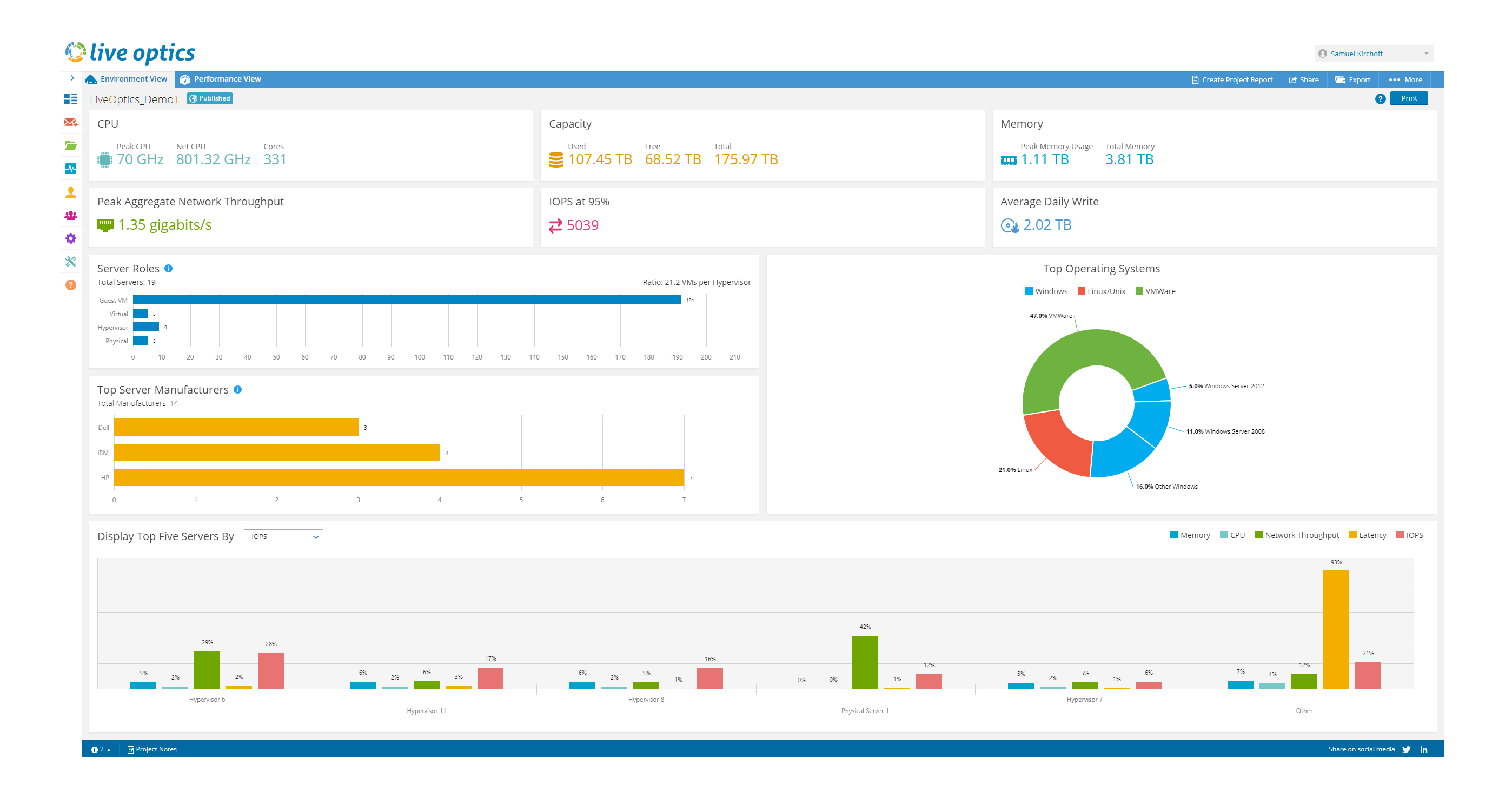 Live Optics 在设计上考虑到了 IT 和业务决策者的需要。利用此功能强大的在线软件,您可以: