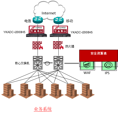 在客户业务的出口双机部署betway必威通明湖应用交付控制器,并配置链路检测配置文件,若线路故障实现自动进行主备切换故障转移。