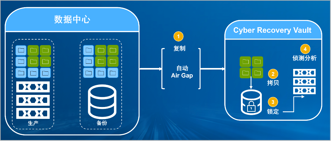betway必威防勒索病毒方案将生产中心备份数据复制到Vault区,复制后网络自动断开实现弹性隔离。Vault区的数据快速拷贝,并对拷贝版本加锁(在锁定期数据不允许删除和修改)。Vault沙箱内对拷贝版本进行扫描分析,验证数据是否完好。